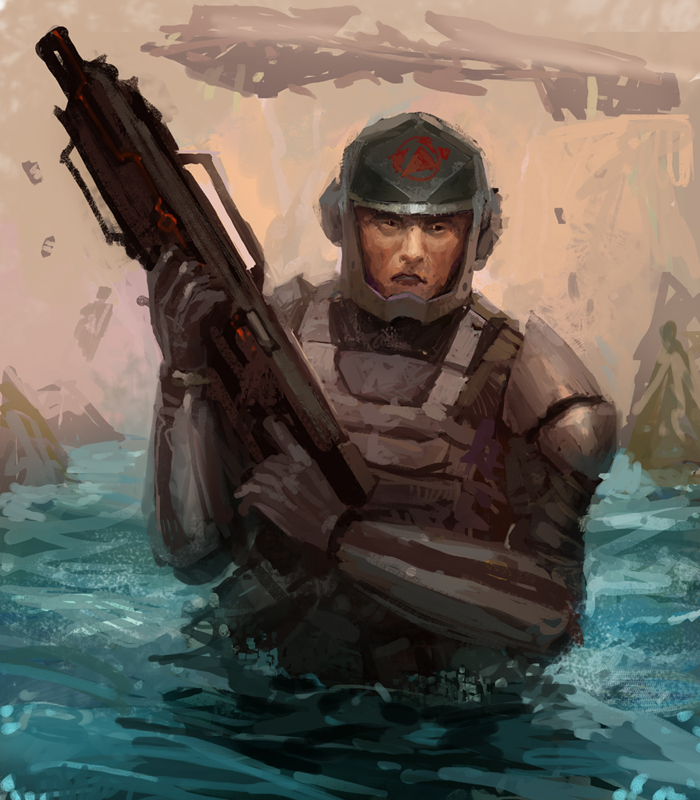 приятный рисунок но композиционно пехотинец слишком низко и тянет внимание зрителя вниз рисунка